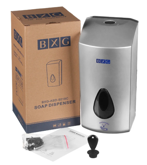 Дозатор жидкого мыла BXG ASD-5018C (автоматический). Предназначен для наливного жидкого мыла и антисептических средств. Благодаря большой ёмкости бака пригоден для работы в местах с повышенным трафиком посетителей. Прост и надёжен, может работать от батареек и от сетевого адаптера.