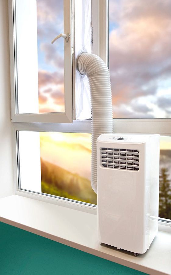 В помещениях, где невозможно установить сплит-систему по различным причинам, или же когда ваше пребывание является очевидно временным ,а лишать себя комфорта, который может дать кондиционер не хочется, то в таких случаях придуман и изобретен мобильный кондиционер! Все же мобильным его назвать можно не во всем, т.к. подготовка его к работе все равно потребуется. Основной задачей будет являться отвод воздуховода в окно или через стену, при этом этот отвод должен быть плотно зафиксирован, без возможности воздуху «войти» в дом.